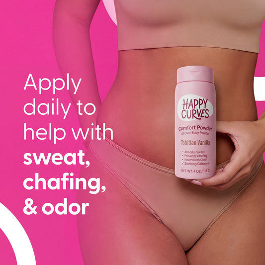 Happy Curves products are safe to use all over. We suggest any spots on your body that are high friction, high heat, and prone to extra sweating but the ingredients are safe for intimate areas and more.